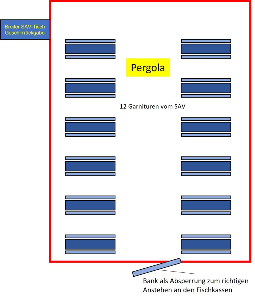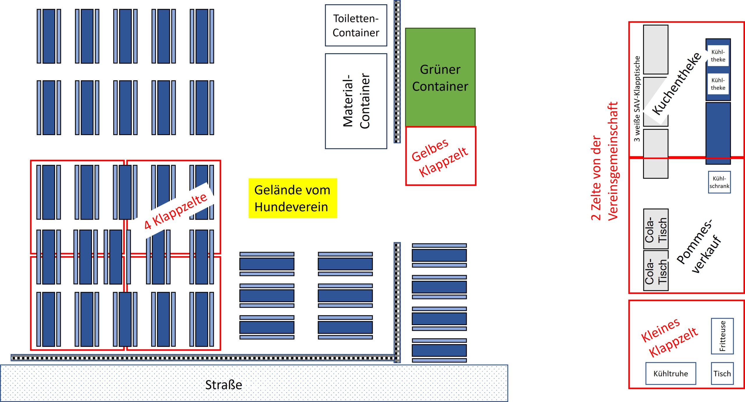 • Aufstellplan für Zelte und Garnituren auf dem Gelände des Hundevereins